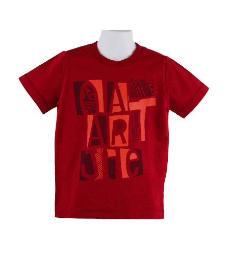 100% cotton knit solid color short sleeve tee with ribbed neck and front Naartjie tiki printed graphic. Machine washable. Imported.
