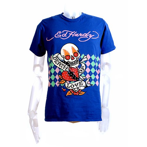 Ed Hardy Mens Short Sleeved Argyle Print T-Shirt With Rhinestone Death Of Love Graphic, 100% Cotton. Review