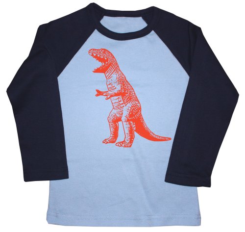 T Rex Dinosaur Boys 3/4 Sleeve Light Blue and Navy American Apparel T Shirt Review